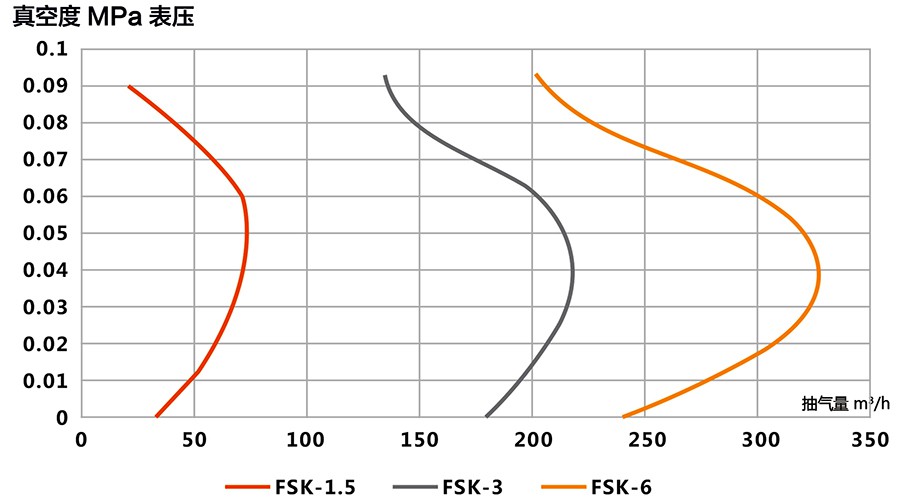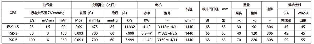 FSK系列耐腐蝕真空泵適應于90~360m3/h的低抽氣量區間,極限真空度較低,可增加電機功率作為壓縮機使用。