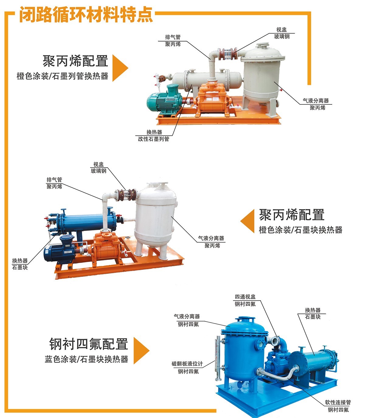 耐腐蝕液環(huán)泵可以升級為閉路循環(huán)系統(tǒng),它由FSK系列、F2SK系列、F2BV系列、F2BE系列和JZJFS羅茨泵系列,與真空換緩沖罐、汽液分離器、換熱器、連接管路等串聯(lián)組成。閉路循環(huán)與用戶DCS連接可實現(xiàn)自動控制。
